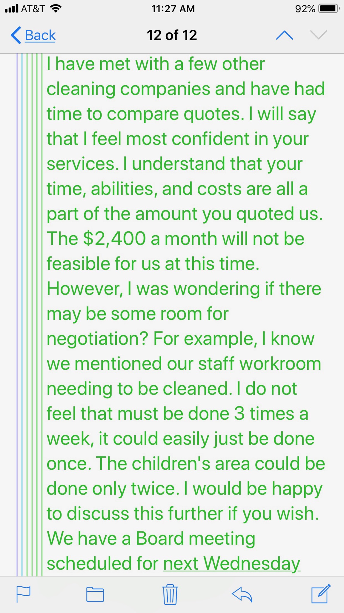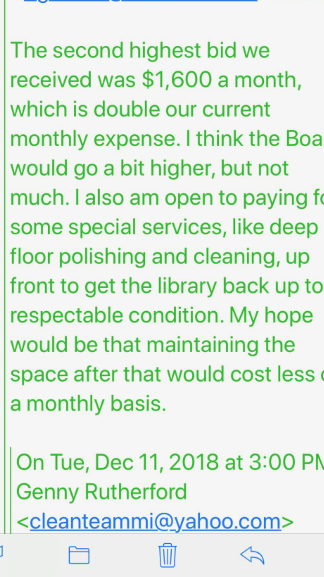 We quoted $200.00 per cleaning 3 times a week for a library and this was the reply.