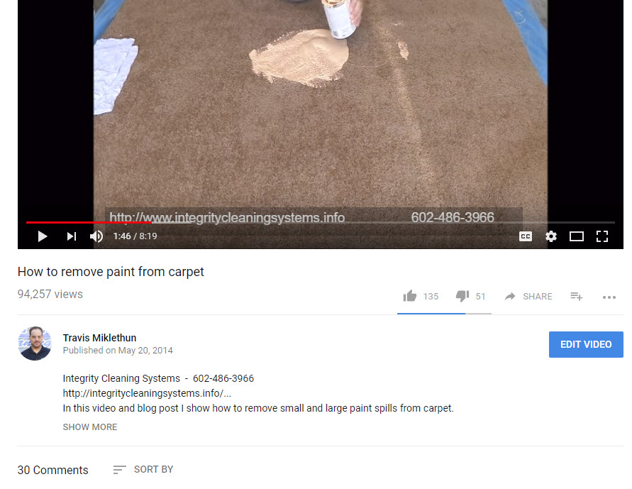 It is one of the longest youtube video on paint removal from carpet. Almost 9 minutes.