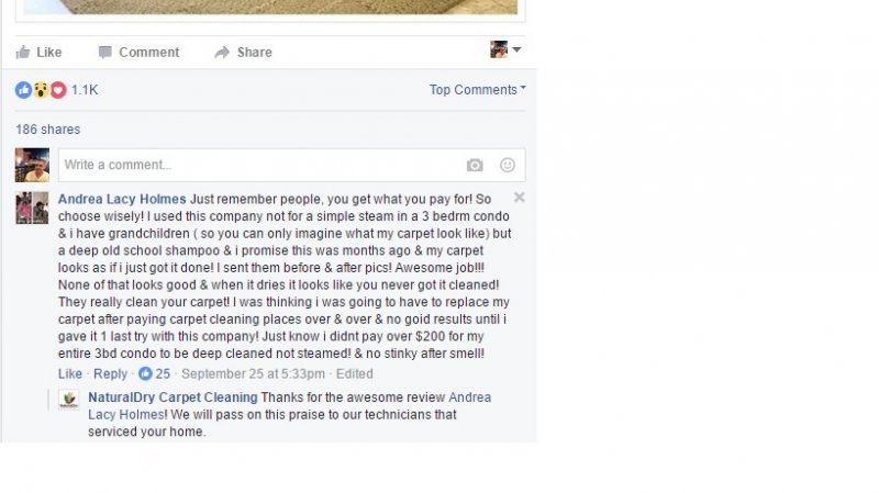 Don't run post ads with multiple pictures!! If you look at my Facebook: http://www.facebook.com/naturaldry I started running that Rug Cleaning Ad. I have 7 pictures in that post. The results were shit. I thought it would be good because they look pretty cool and would draw attention. Yet I had only 2 link clicks out of $100. Waste of money. Use only ONE Before & After Pic in your post ad. It draws more attention. Make sure the before/after looks good. We've been lacking on doing Before/Afters so I've re ran some old ones from 2014 that people probably don't remember.