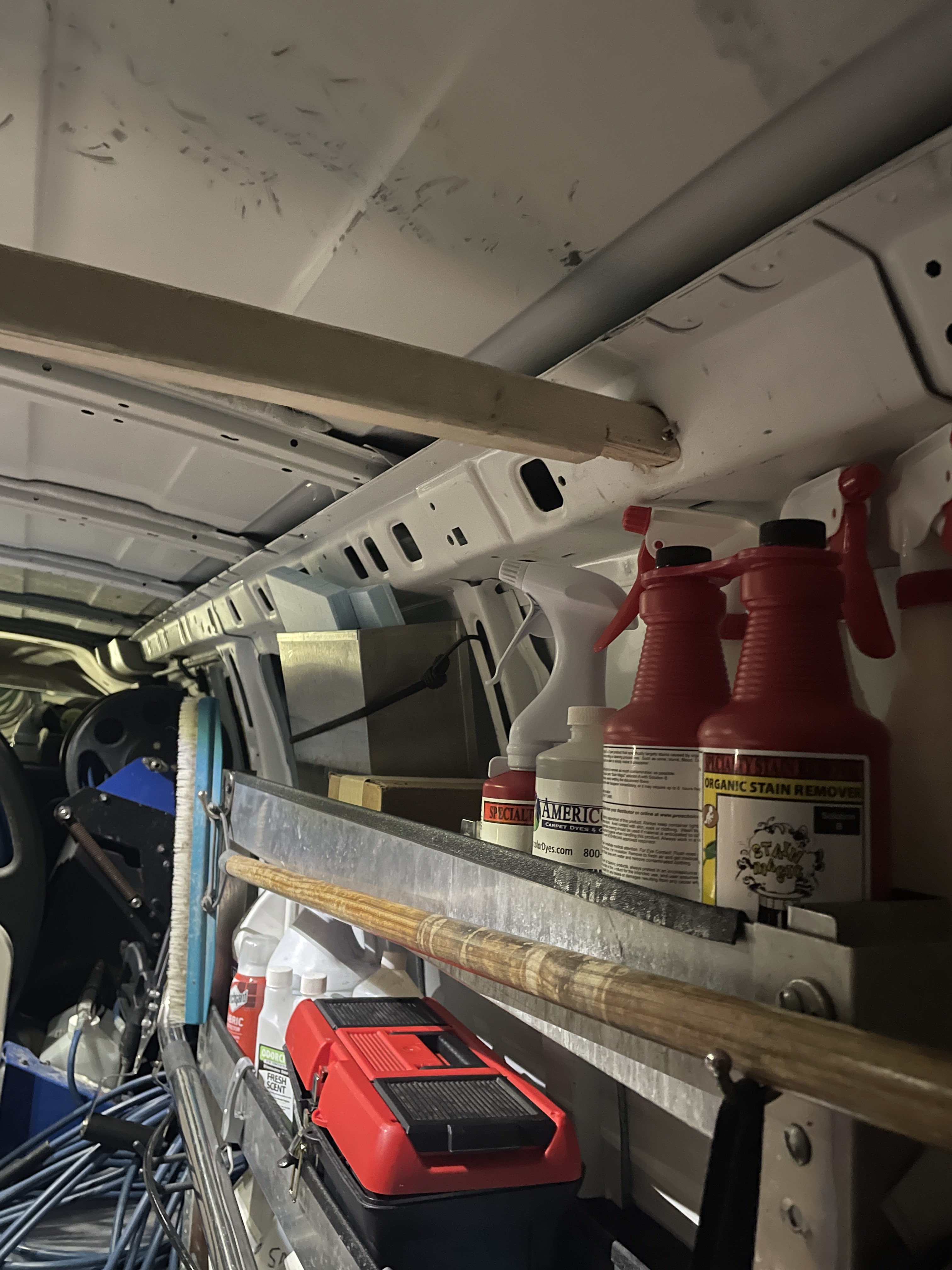 Looking for ideas of how to store wands and tile spinners rakes brushes etc on the roof of Frankenstein (my van) please share pictures if you're using the ceiling of your van for storage
